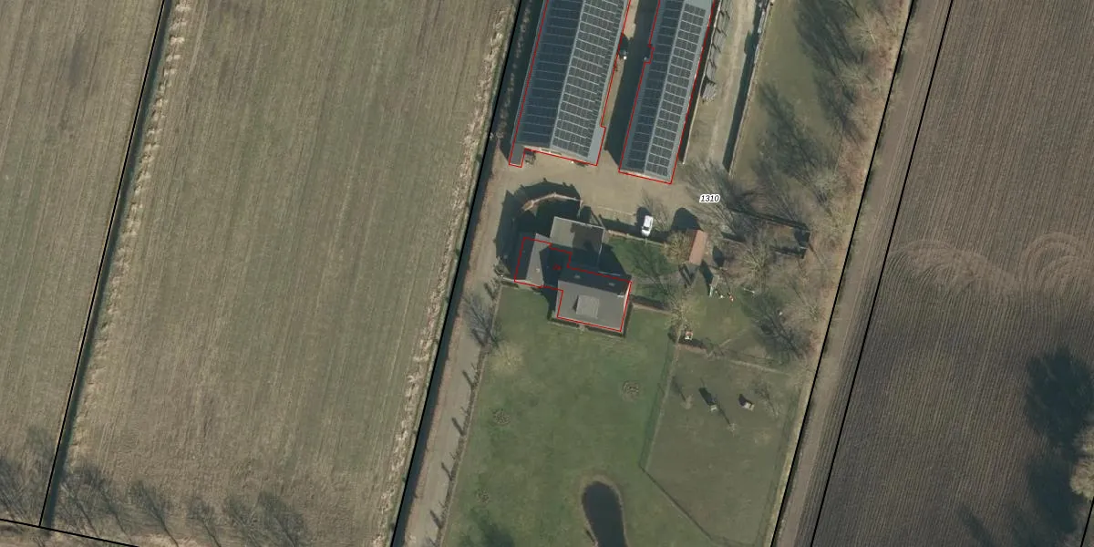Het adres ligt op het perceel HWK02-E-1310, dat zich in de kadastrale gemeente Heeswijk-Dinther bevindt. Het perceel is met 1,0 ha relatief groot. Het gemiddelde ligt in de kadastrale gemeente Heeswijk-Dinther op 4904,42 m². De grootste perceeloppervlakte in de kadastrale gemeente is 23,1 ha. De kleinste oppervlakte bedraagt 0 m². Dit is het enige adres dat aanwezig is op het perceel. De laatste wijziging in het de Basisregistratie Kadaster (BRK) was op 22-12-2006.