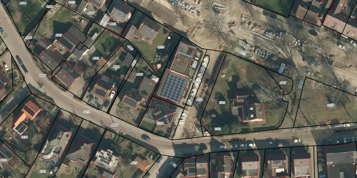 Het perceel waarop Kerkstraat 1-b staat heeft een oppervlakte van 643 m². Dit is een groot perceel. De perceeloppervlakte wordt geregistreerd door het Kadaster. Gedetailleerde informatie over de maten van dit perceel kunt u vinden in het rapport Kadastrale kaart met maatvoering van Kerkstraat 1-b.