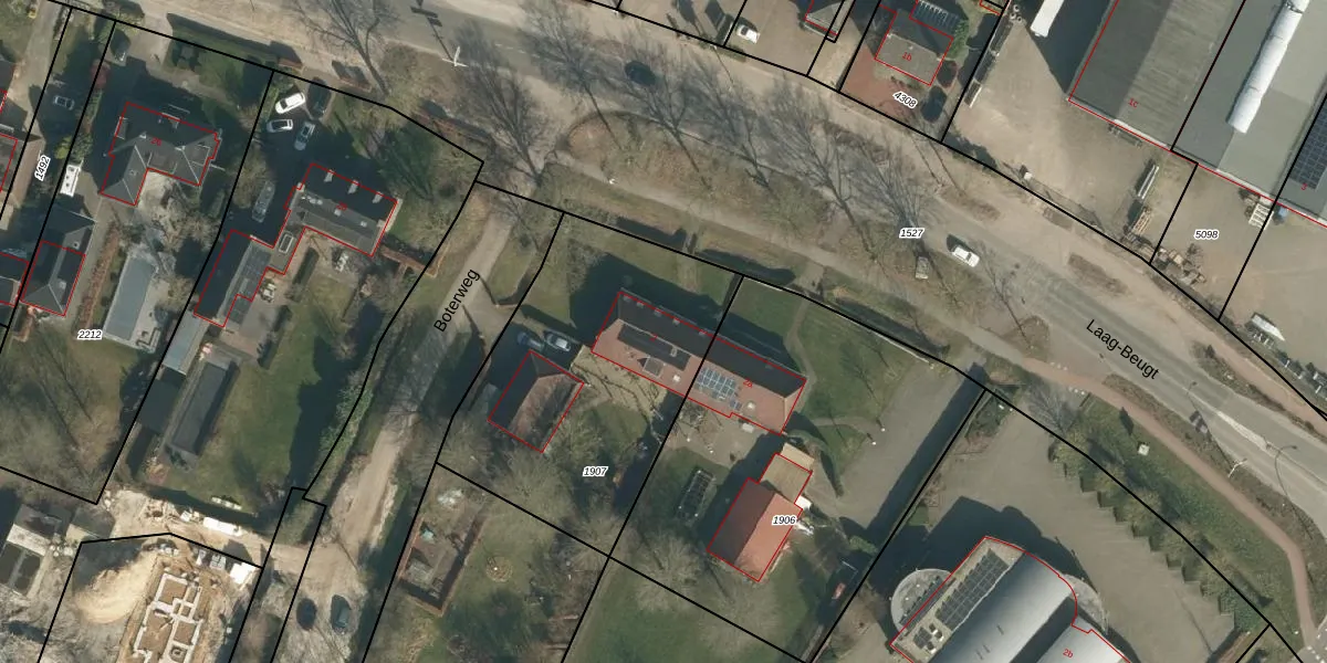 Het perceel waarop Laag-Beugt 2 staat heeft een oppervlakte van 1305 m². Dit is een zeer groot perceel. De perceeloppervlakte wordt geregistreerd door het Kadaster. Gedetailleerde informatie over de maten van dit perceel kunt u vinden in het rapport Kadastrale kaart met maatvoering van Laag-Beugt 2.