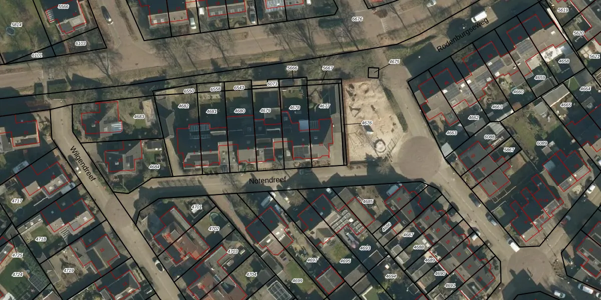 Notendreef 9 is gelegen op kadastraal perceel HWK02C4678. Deze kadastrale aanduiding is uniek en wordt gebruikt door het Kadaster om eigendomsrechten en andere zakelijke rechten vast te leggen. Het perceel maakt onderdeel uit van de kadastrale gemeente Heeswijk-Dinther.