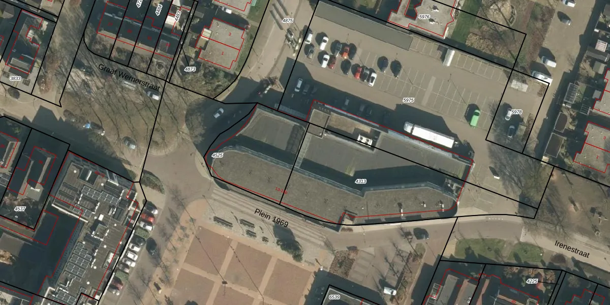 Het perceel waarop Plein 1969 13-e staat heeft een oppervlakte van 1470 m². Dit is een zeer groot perceel. De perceeloppervlakte wordt geregistreerd door het Kadaster. Gedetailleerde informatie over de maten van dit perceel kunt u vinden in het rapport Kadastrale kaart met maatvoering van Plein 1969 13-e.
