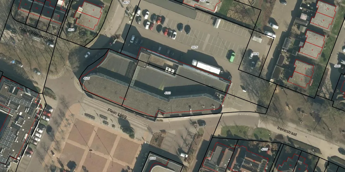 Het perceel waarop Plein 1969 13-j staat heeft een oppervlakte van 1470 m². Dit is een zeer groot perceel. De perceeloppervlakte wordt geregistreerd door het Kadaster. Gedetailleerde informatie over de maten van dit perceel kunt u vinden in het rapport Kadastrale kaart met maatvoering van Plein 1969 13-j.