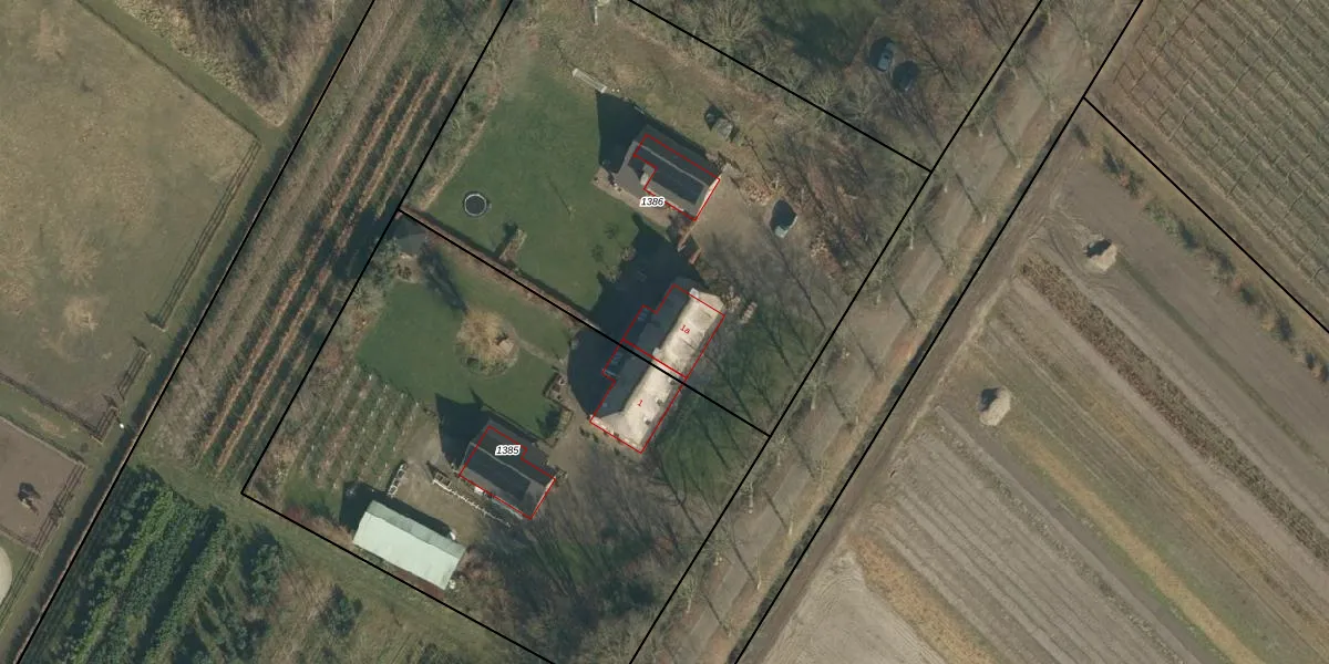 Het perceel waarop Poststraat 1-a staat heeft een oppervlakte van 3040 m². Dit is een zeer groot perceel. De perceeloppervlakte wordt geregistreerd door het Kadaster. Gedetailleerde informatie over de maten van dit perceel kunt u vinden in het rapport Kadastrale kaart met maatvoering van Poststraat 1-a.