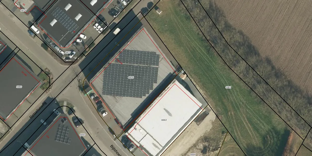 Het perceel waarop het adres ligt is HWK02-C-6605. De afkorting 'HWK02' staat voor kadastrale gemeente Heeswijk-Dinther. Het perceel is kleiner dan gemiddeld in Heeswijk-Dinther. Het perceel is 2503 m² groot, terwijl het gemiddelde ligt op 4904,42 m². De grootste perceeloppervlakte in de kadastrale gemeente is 23,1 ha. De kleinste oppervlakte bedraagt 0 m². Op het perceel liggen in totaal 6 adressen. In de Basisregistratie Kadaster (BRK) werden de grenzen van het perceel geregistreerd op 13-12-2021.