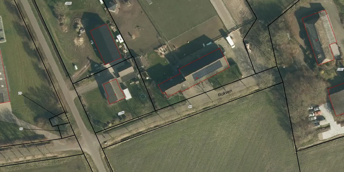 Het perceel waarop Rukven 9-a staat heeft een oppervlakte van 1,7 ha. Dit is een zeer groot perceel. De perceeloppervlakte wordt geregistreerd door het Kadaster. Gedetailleerde informatie over de maten van dit perceel kunt u vinden in het rapport Kadastrale kaart met maatvoering van Rukven 9-a.