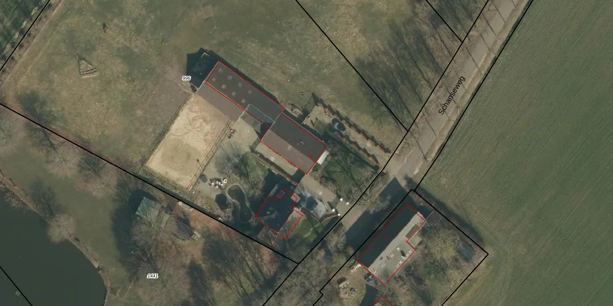 Het perceel waarop Schanseweg 3-a staat heeft een oppervlakte van 9320 m². Dit is een zeer groot perceel. De perceeloppervlakte wordt geregistreerd door het Kadaster. Gedetailleerde informatie over de maten van dit perceel kunt u vinden in het rapport Kadastrale kaart met maatvoering van Schanseweg 3-a.