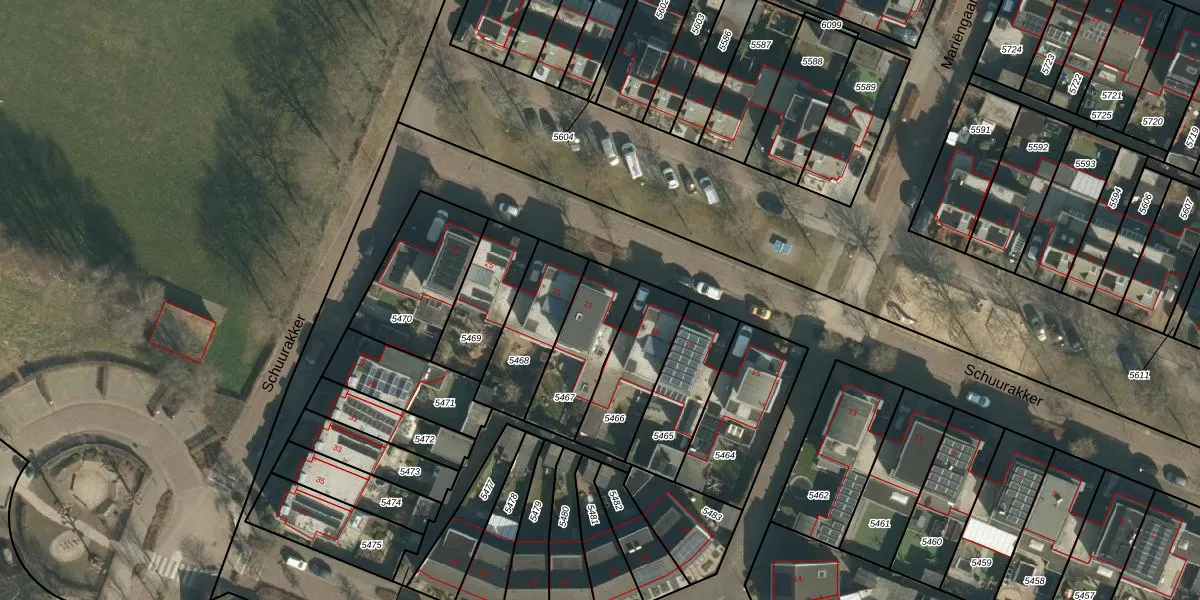 Het perceel waarop Schuurakker 21 staat heeft een oppervlakte van 262 m². Dit is een middelgroot perceel. De perceeloppervlakte wordt geregistreerd door het Kadaster. Gedetailleerde informatie over de maten van dit perceel kunt u vinden in het rapport Kadastrale kaart met maatvoering van Schuurakker 21.