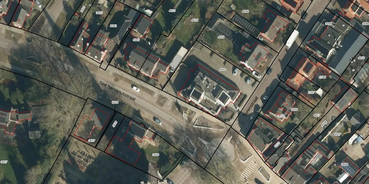 Het perceel waarop Sint Servatiusstraat 2 staat heeft een oppervlakte van 1255 m². Dit is een zeer groot perceel. De perceeloppervlakte wordt geregistreerd door het Kadaster. Gedetailleerde informatie over de maten van dit perceel kunt u vinden in het rapport Kadastrale kaart met maatvoering van Sint Servatiusstraat 2.