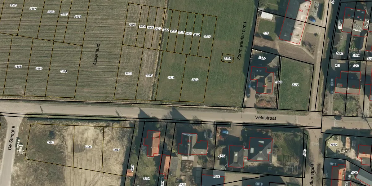 Veldstraat 34-b is gelegen op kadastraal perceel HWK02E3619. Deze kadastrale aanduiding is uniek en wordt gebruikt door het Kadaster om eigendomsrechten en andere zakelijke rechten vast te leggen. Het perceel maakt onderdeel uit van de kadastrale gemeente Heeswijk-Dinther.