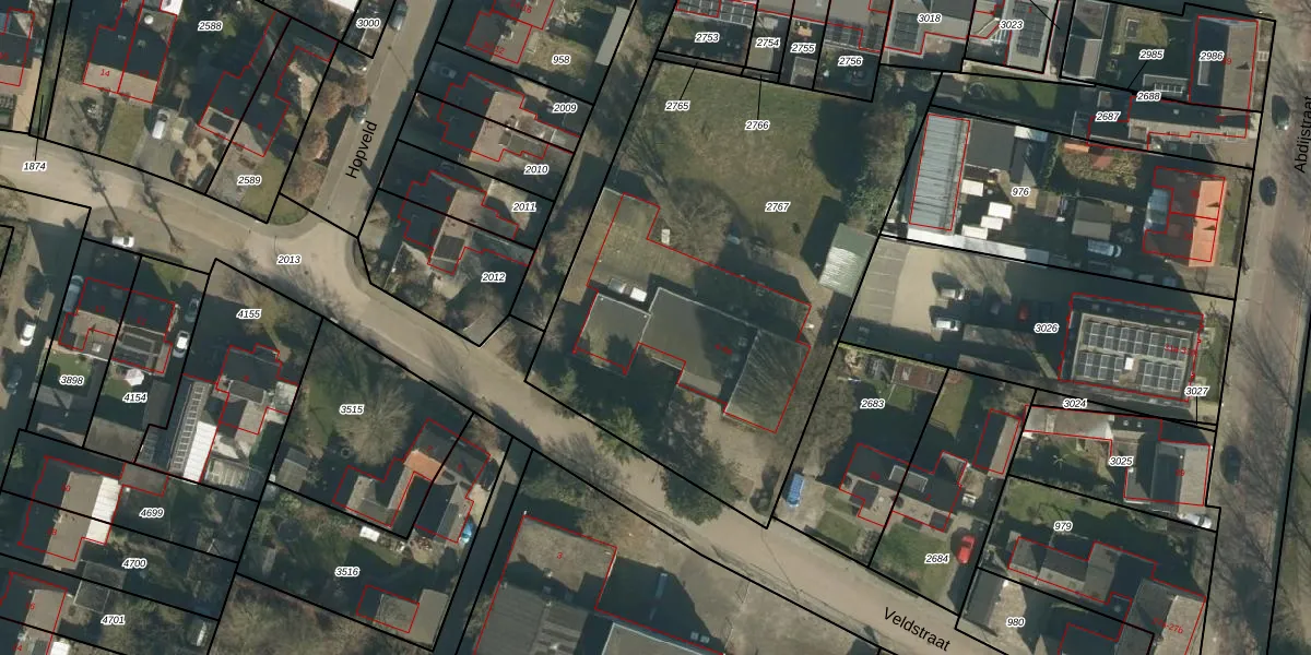 Het perceel waarop Veldstraat 4 staat heeft een oppervlakte van 2610 m². Dit is een zeer groot perceel. De perceeloppervlakte wordt geregistreerd door het Kadaster. Gedetailleerde informatie over de maten van dit perceel kunt u vinden in het rapport Kadastrale kaart met maatvoering van Veldstraat 4.