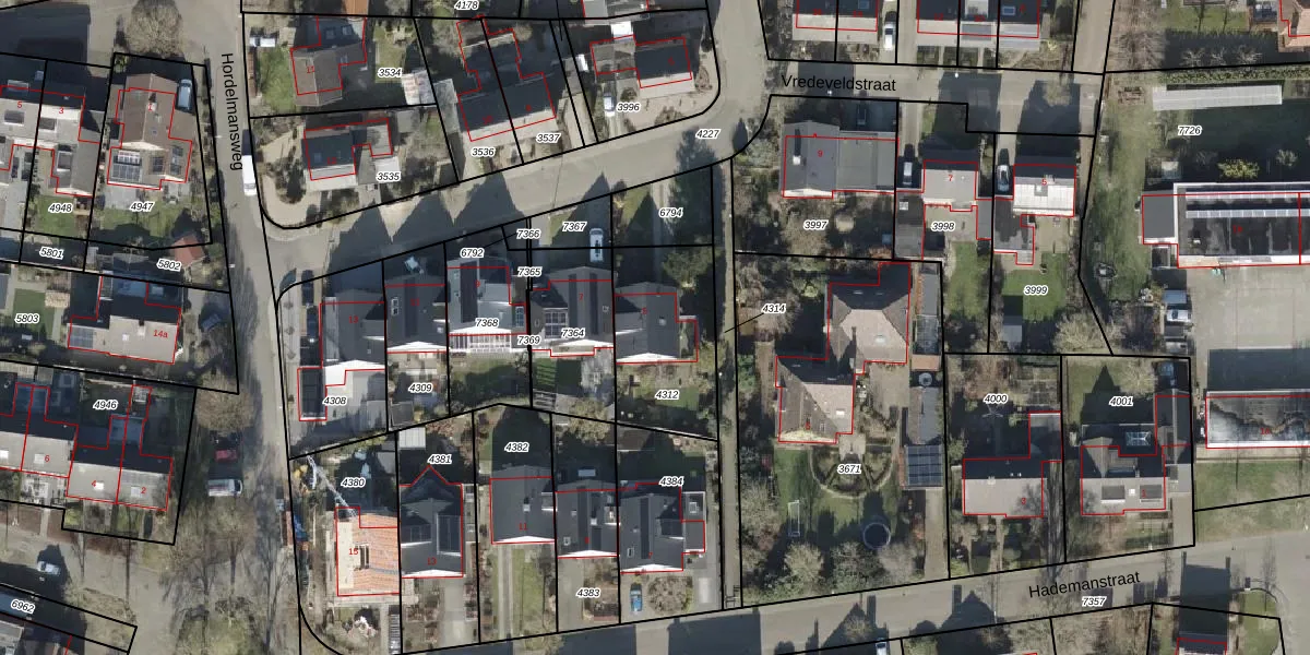 Gebruik de zoekbalk of klik op een perceel voor informatie over de adressen binnen dit perceel.