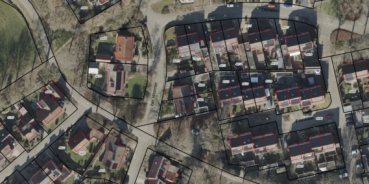 Gebruik de zoekbalk of klik op een perceel voor informatie over de adressen binnen dit perceel.