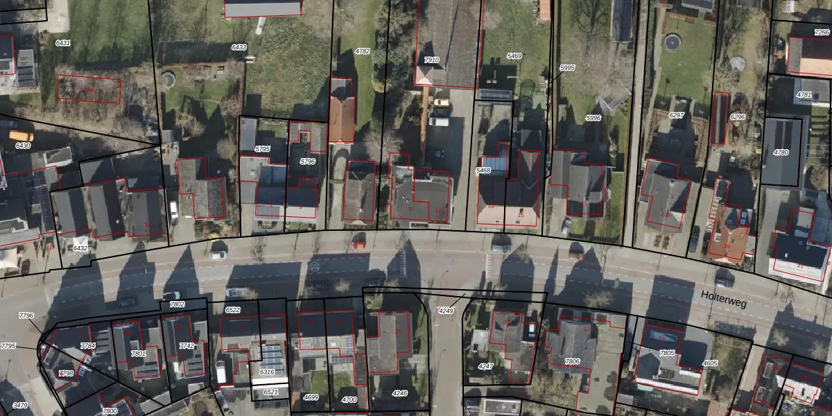 Het perceel waarop Holterweg 9 staat heeft een oppervlakte van 1738 m². Dit is een zeer groot perceel. De perceeloppervlakte wordt geregistreerd door het Kadaster. Gedetailleerde informatie over de maten van dit perceel kunt u vinden in het rapport Kadastrale kaart met maatvoering van Holterweg 9.