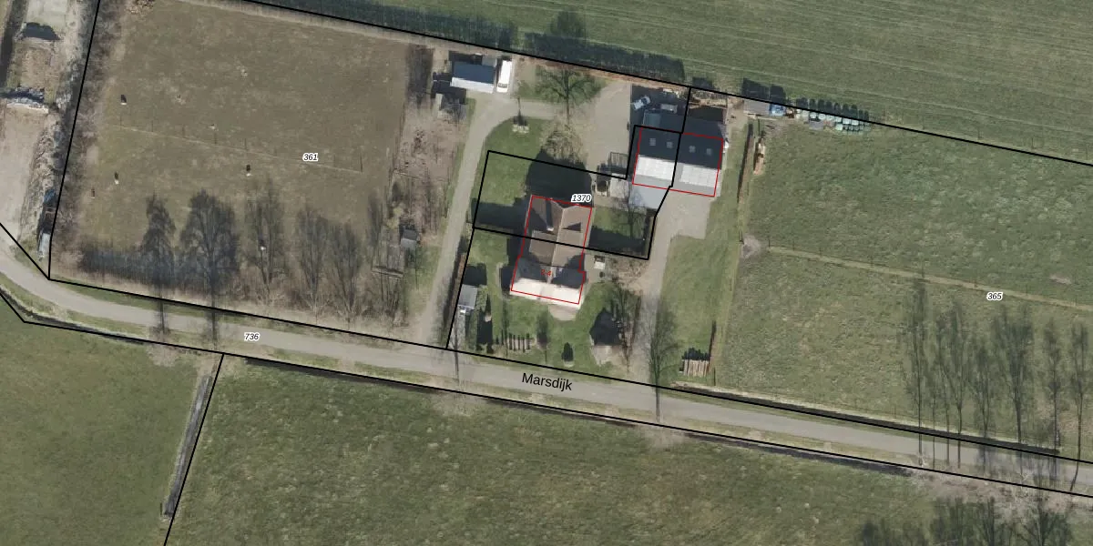 Het perceel waarop Marsdijk 2 staat heeft een oppervlakte van 7922 m². Dit is een zeer groot perceel. De perceeloppervlakte wordt geregistreerd door het Kadaster. Gedetailleerde informatie over de maten van dit perceel kunt u vinden in het rapport Kadastrale kaart met maatvoering van Marsdijk 2.