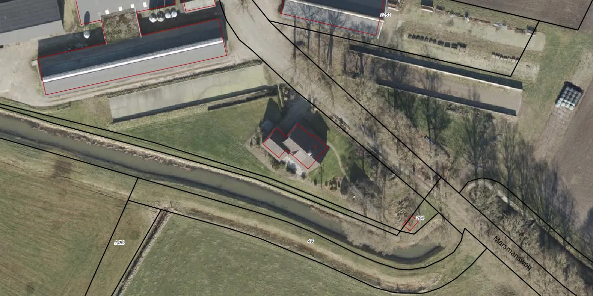 Het perceel waarop Marsmansweg 6 staat heeft een oppervlakte van 10,2 ha. Dit is een zeer groot perceel. De perceeloppervlakte wordt geregistreerd door het Kadaster. Gedetailleerde informatie over de maten van dit perceel kunt u vinden in het rapport Kadastrale kaart met maatvoering van Marsmansweg 6.