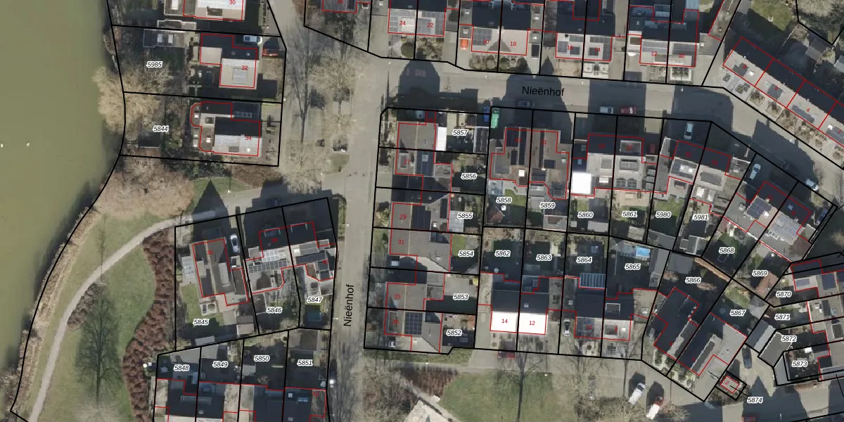 Het perceel waarop Nieënhof 29 staat heeft een oppervlakte van 248 m². Dit is een middelgroot perceel. De perceeloppervlakte wordt geregistreerd door het Kadaster. Gedetailleerde informatie over de maten van dit perceel kunt u vinden in het rapport Kadastrale kaart met maatvoering van Nieënhof 29.