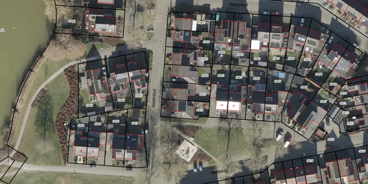 Het perceel waarop Nieënhof 33 staat heeft een oppervlakte van 247 m². Dit is een middelgroot perceel. De perceeloppervlakte wordt geregistreerd door het Kadaster. Gedetailleerde informatie over de maten van dit perceel kunt u vinden in het rapport Kadastrale kaart met maatvoering van Nieënhof 33.