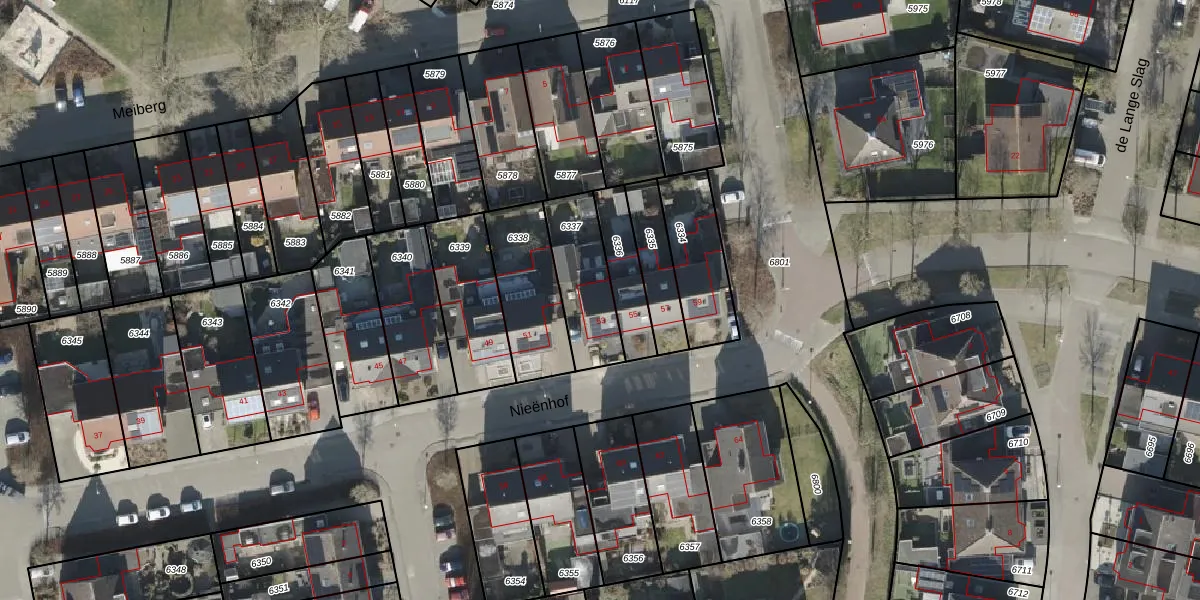 Het perceel waarop Nieënhof 53 staat heeft een oppervlakte van 248 m². Dit is een middelgroot perceel. De perceeloppervlakte wordt geregistreerd door het Kadaster. Gedetailleerde informatie over de maten van dit perceel kunt u vinden in het rapport Kadastrale kaart met maatvoering van Nieënhof 53.