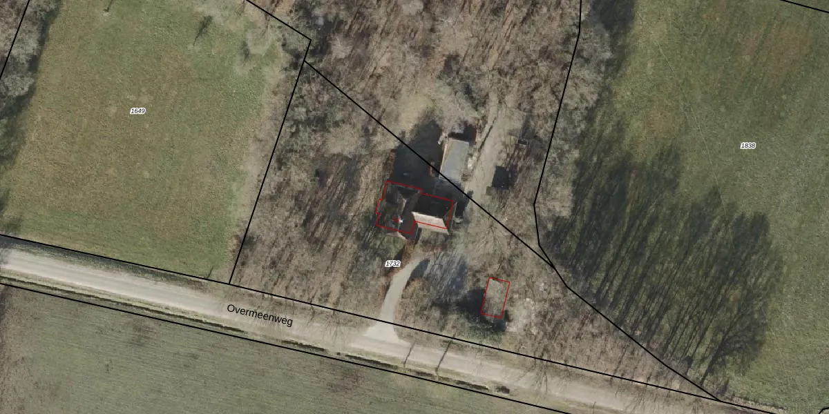 Het perceel waarop Overmeenweg 13 staat heeft een oppervlakte van 3410 m². Dit is een zeer groot perceel. De perceeloppervlakte wordt geregistreerd door het Kadaster. Gedetailleerde informatie over de maten van dit perceel kunt u vinden in het rapport Kadastrale kaart met maatvoering van Overmeenweg 13.