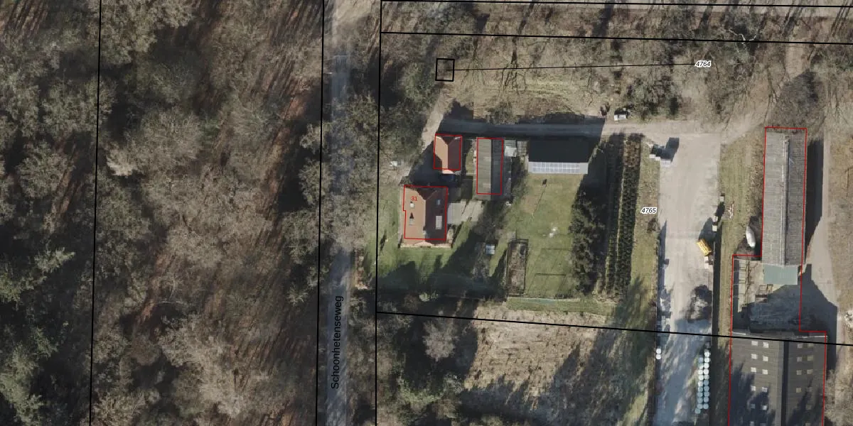 Het perceel waarop Schoonhetenseweg 31 staat heeft een oppervlakte van 8365 m². Dit is een zeer groot perceel. De perceeloppervlakte wordt geregistreerd door het Kadaster. Gedetailleerde informatie over de maten van dit perceel kunt u vinden in het rapport Kadastrale kaart met maatvoering van Schoonhetenseweg 31.