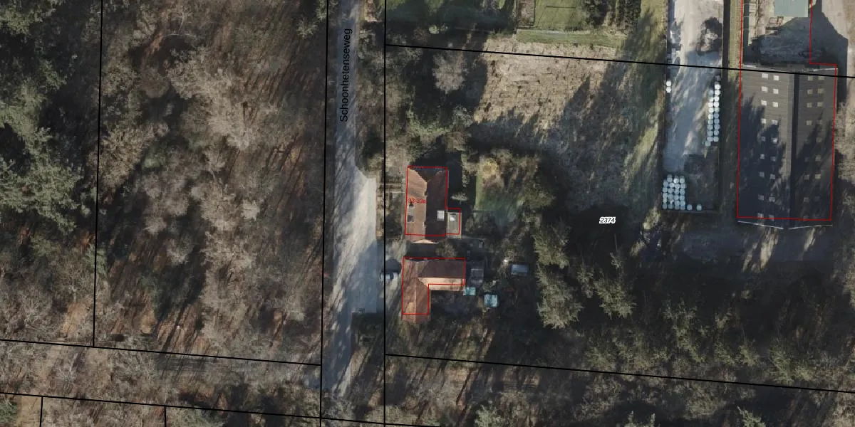 Het perceel waarop Schoonhetenseweg 33 staat heeft een oppervlakte van 9420 m². Dit is een zeer groot perceel. De perceeloppervlakte wordt geregistreerd door het Kadaster. Gedetailleerde informatie over de maten van dit perceel kunt u vinden in het rapport Kadastrale kaart met maatvoering van Schoonhetenseweg 33.
