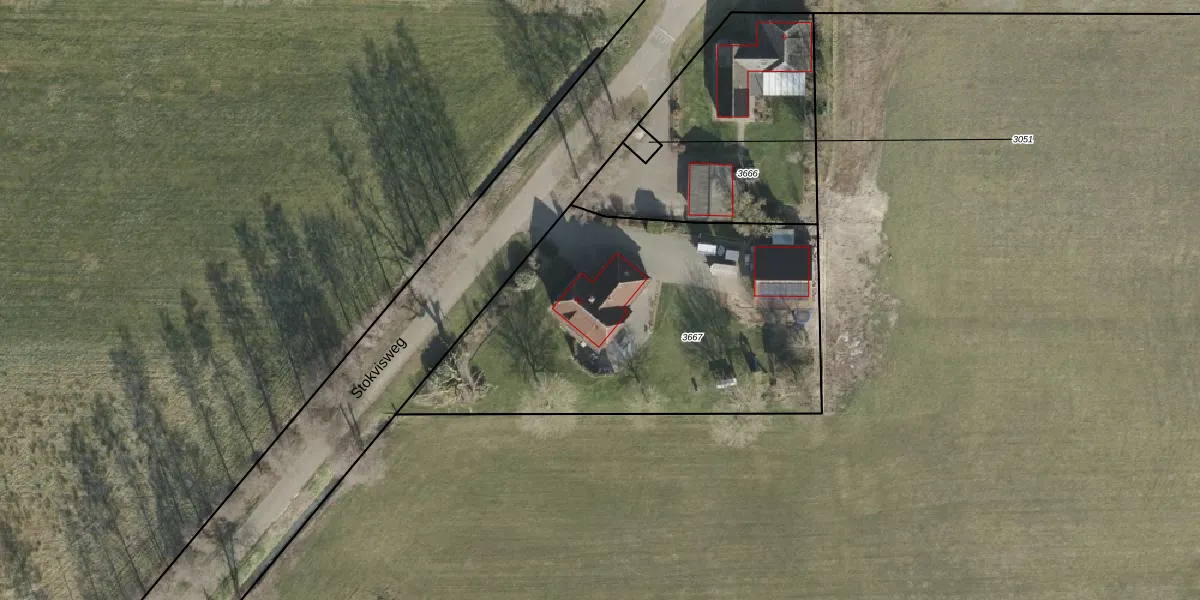 Het perceel waarop Stokvisweg 15 staat heeft een oppervlakte van 1938 m². Dit is een zeer groot perceel. De perceeloppervlakte wordt geregistreerd door het Kadaster. Gedetailleerde informatie over de maten van dit perceel kunt u vinden in het rapport Kadastrale kaart met maatvoering van Stokvisweg 15.