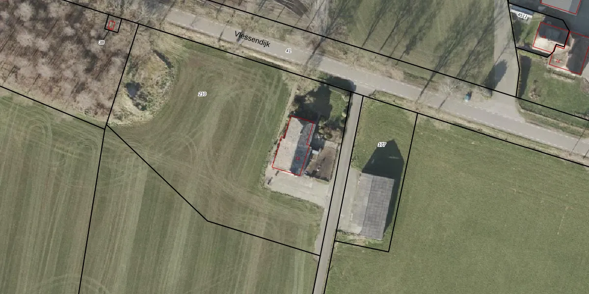 Vlessendijk 13 is gelegen op kadastraal perceel RTE00S210. Deze kadastrale aanduiding is uniek en wordt gebruikt door het Kadaster om eigendomsrechten en andere zakelijke rechten vast te leggen. Het perceel maakt onderdeel uit van de kadastrale gemeente Raalte.