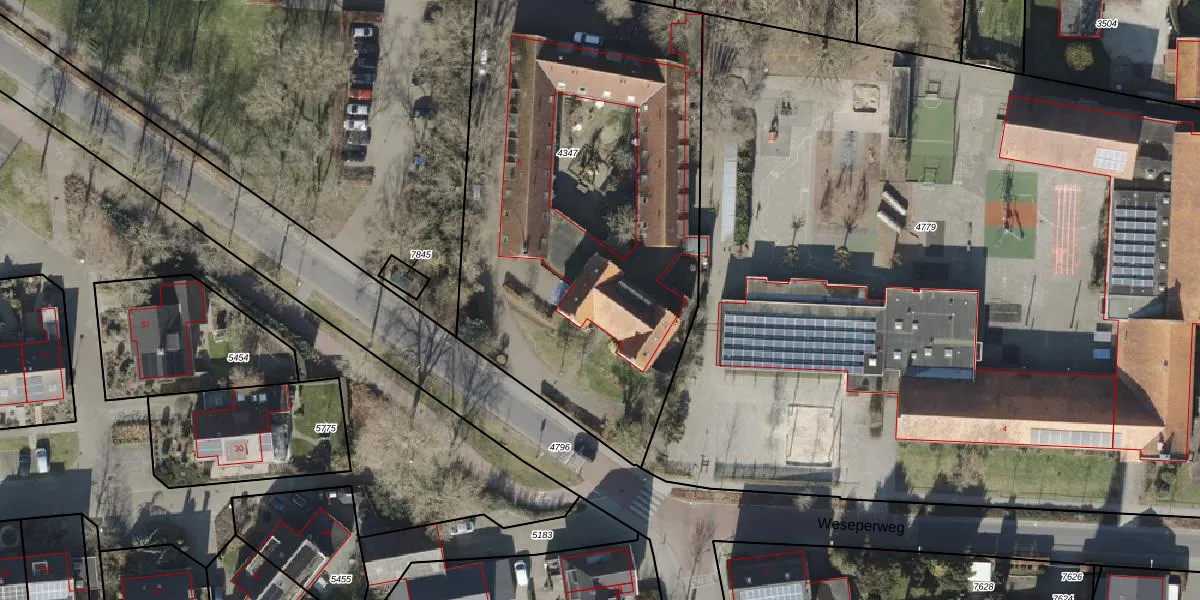 Het perceel waarop Weseperweg 6 staat heeft een oppervlakte van 2683 m². Dit is een zeer groot perceel. De perceeloppervlakte wordt geregistreerd door het Kadaster. Gedetailleerde informatie over de maten van dit perceel kunt u vinden in het rapport Kadastrale kaart met maatvoering van Weseperweg 6.