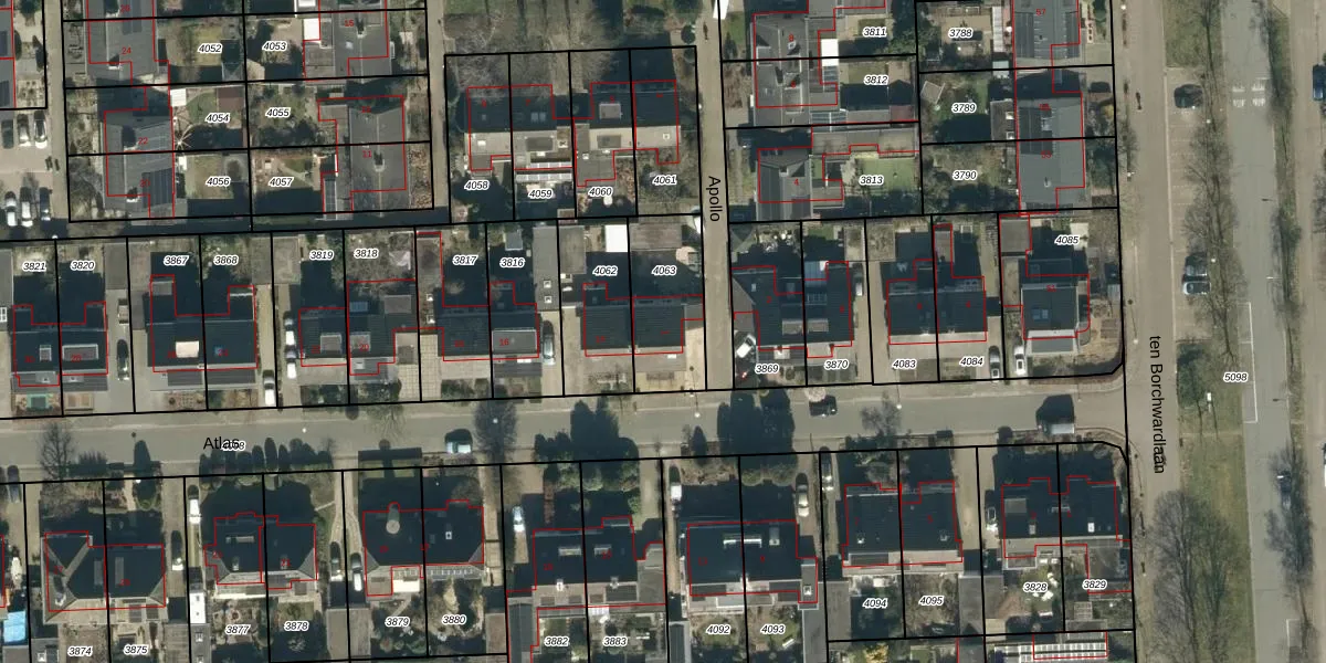 Gebruik de zoekbalk of klik op een perceel voor informatie over de adressen binnen dit perceel.