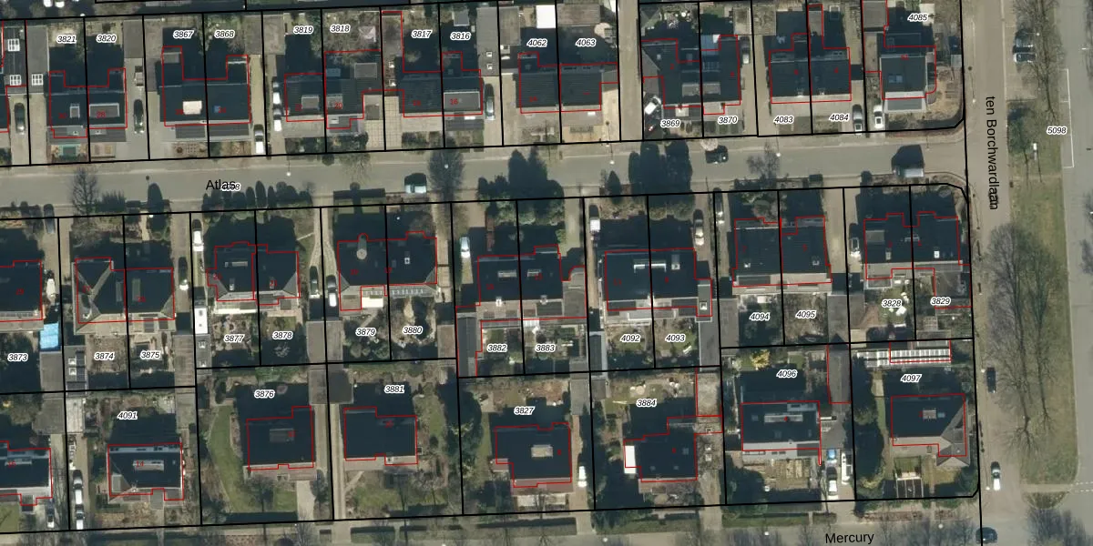 Het perceel waarop Atlas 13 staat heeft een oppervlakte van 384 m². Dit is een groot perceel. De perceeloppervlakte wordt geregistreerd door het Kadaster. Gedetailleerde informatie over de maten van dit perceel kunt u vinden in het rapport Kadastrale kaart met maatvoering van Atlas 13.