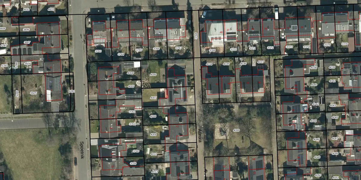 Het perceel waarop Aurora 15 staat heeft een oppervlakte van 305 m². Dit is een groot perceel. De perceeloppervlakte wordt geregistreerd door het Kadaster. Gedetailleerde informatie over de maten van dit perceel kunt u vinden in het rapport Kadastrale kaart met maatvoering van Aurora 15.