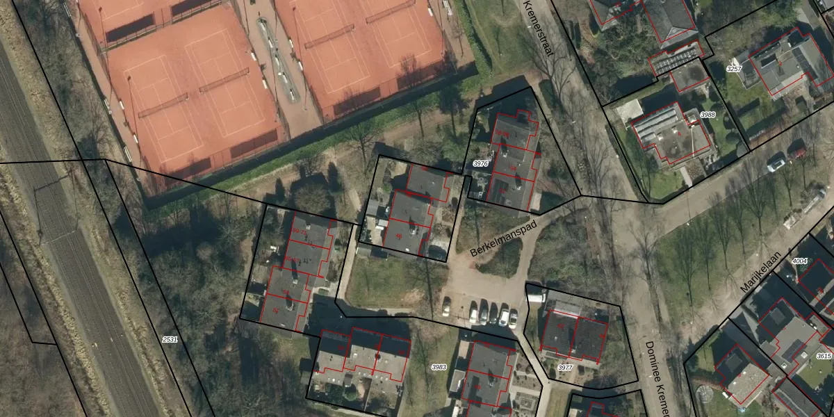 Het perceel waarop Berkelmanspad 48 staat heeft een oppervlakte van 1025 m². Dit is een zeer groot perceel. De perceeloppervlakte wordt geregistreerd door het Kadaster. Gedetailleerde informatie over de maten van dit perceel kunt u vinden in het rapport Kadastrale kaart met maatvoering van Berkelmanspad 48.