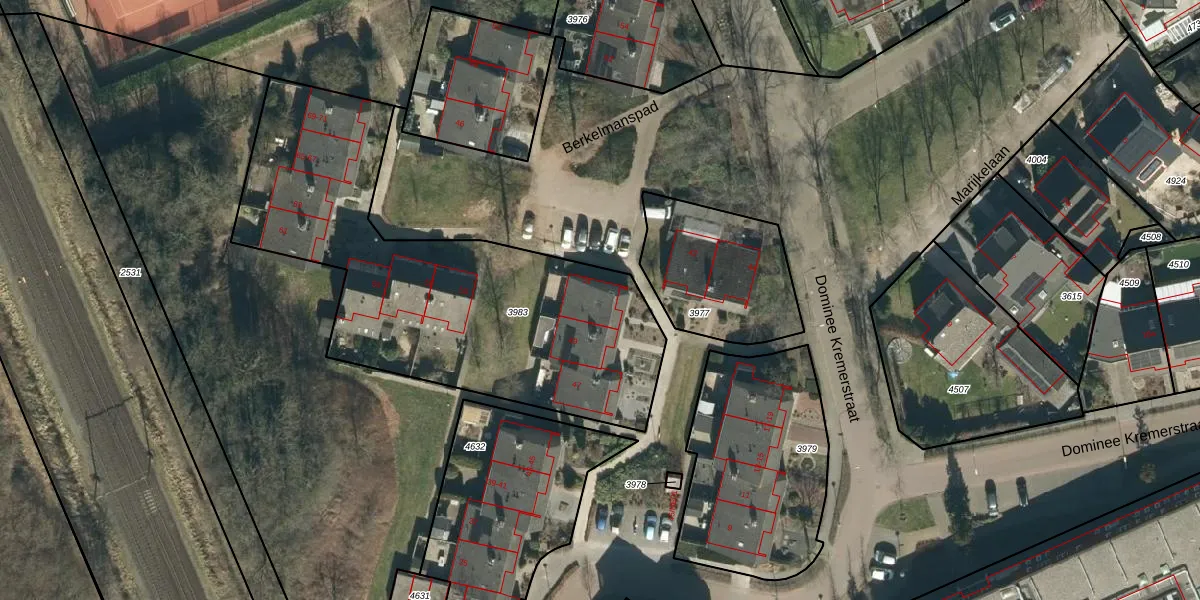 Het perceel waarop Berkelmanspad 51 staat heeft een oppervlakte van 1875 m². Dit is een zeer groot perceel. De perceeloppervlakte wordt geregistreerd door het Kadaster. Gedetailleerde informatie over de maten van dit perceel kunt u vinden in het rapport Kadastrale kaart met maatvoering van Berkelmanspad 51.