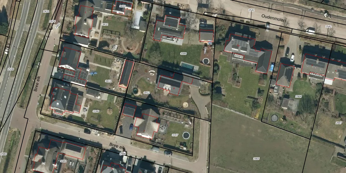 Het perceel waarop Bree eik 9 staat heeft een oppervlakte van 1067 m². Dit is een zeer groot perceel. De perceeloppervlakte wordt geregistreerd door het Kadaster. Gedetailleerde informatie over de maten van dit perceel kunt u vinden in het rapport Kadastrale kaart met maatvoering van Bree eik 9.