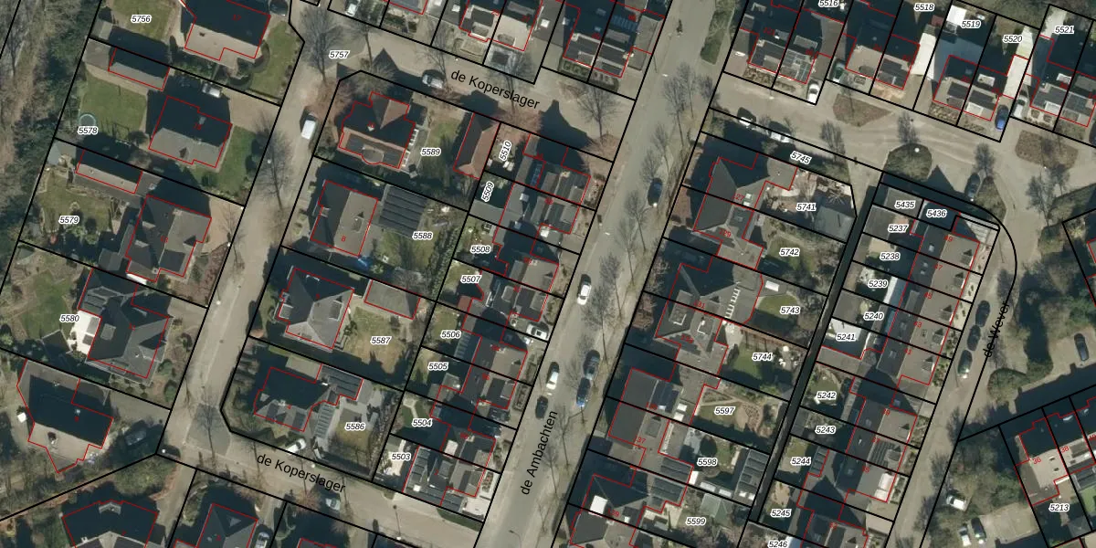 Het perceel waarop de Ambachten 90 staat heeft een oppervlakte van 186 m². Dit is een middelgroot perceel. De perceeloppervlakte wordt geregistreerd door het Kadaster. Gedetailleerde informatie over de maten van dit perceel kunt u vinden in het rapport Kadastrale kaart met maatvoering van de Ambachten 90.