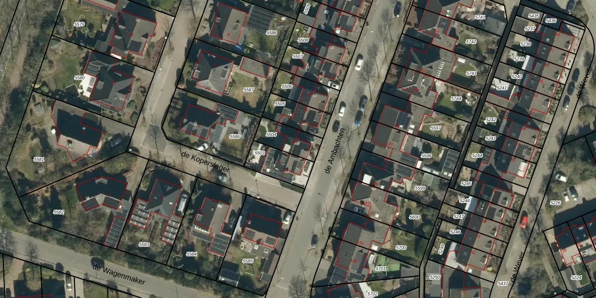 Het perceel waarop de Ambachten 98 staat heeft een oppervlakte van 186 m². Dit is een middelgroot perceel. De perceeloppervlakte wordt geregistreerd door het Kadaster. Gedetailleerde informatie over de maten van dit perceel kunt u vinden in het rapport Kadastrale kaart met maatvoering van de Ambachten 98.
