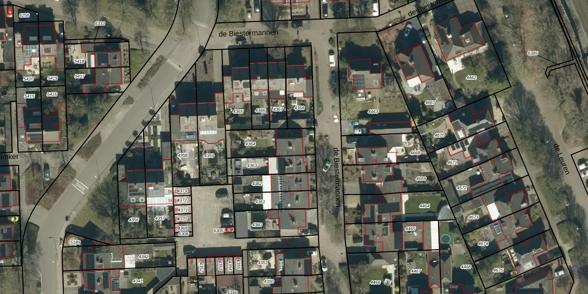 Het perceel waarop de Biestermannen 17 staat heeft een oppervlakte van 282 m². Dit is een middelgroot perceel. De perceeloppervlakte wordt geregistreerd door het Kadaster. Gedetailleerde informatie over de maten van dit perceel kunt u vinden in het rapport Kadastrale kaart met maatvoering van de Biestermannen 17.