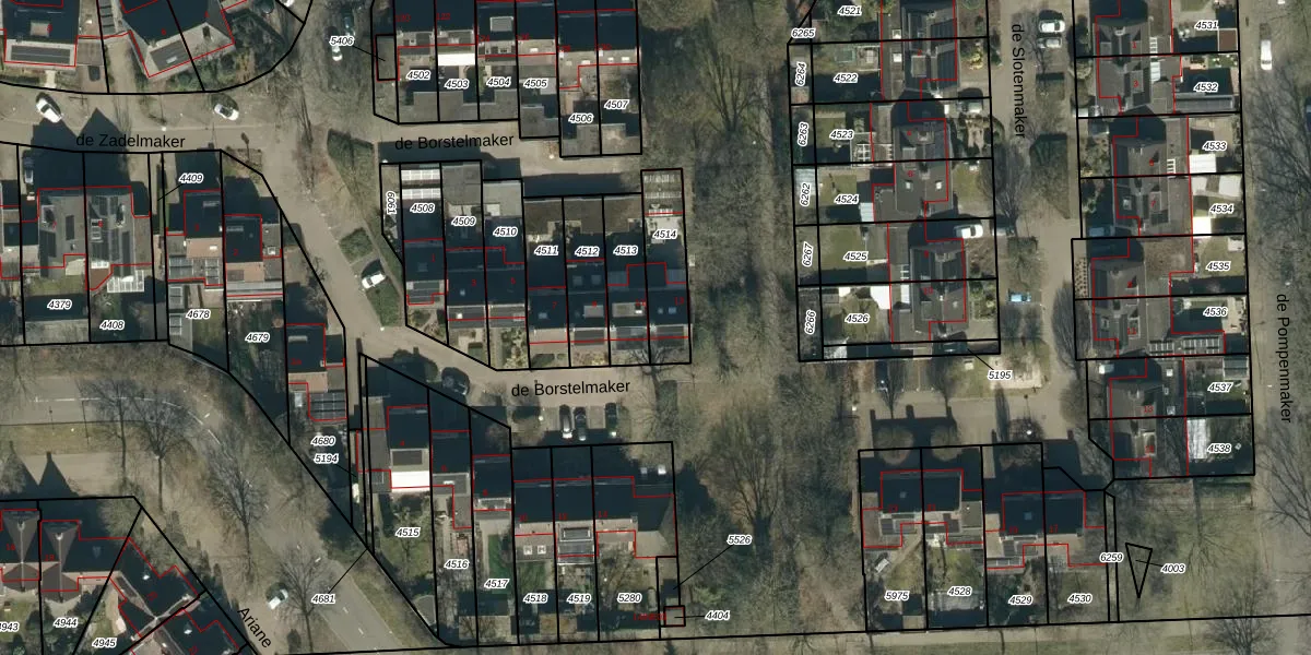 Het perceel waarop de Borstelmaker 13 staat heeft een oppervlakte van 185 m². Dit is een middelgroot perceel. De perceeloppervlakte wordt geregistreerd door het Kadaster. Gedetailleerde informatie over de maten van dit perceel kunt u vinden in het rapport Kadastrale kaart met maatvoering van de Borstelmaker 13.