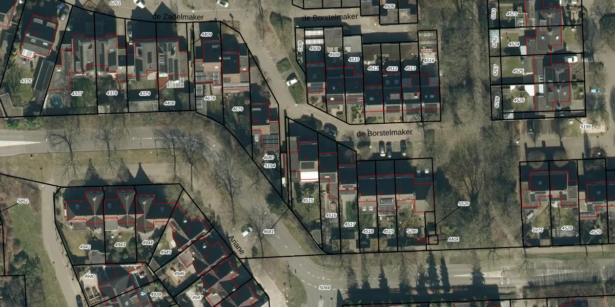 Gebruik de zoekbalk of klik op een perceel voor informatie over de adressen binnen dit perceel.