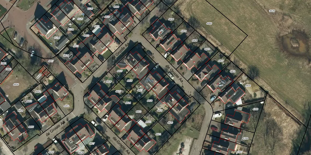 Het perceel waarop de Groote Aa 12 staat heeft een oppervlakte van 227 m². Dit is een middelgroot perceel. De perceeloppervlakte wordt geregistreerd door het Kadaster. Gedetailleerde informatie over de maten van dit perceel kunt u vinden in het rapport Kadastrale kaart met maatvoering van de Groote Aa 12.