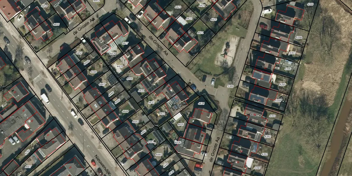 Het perceel waarop de Groote Aa 32 staat heeft een oppervlakte van 256 m². Dit is een middelgroot perceel. De perceeloppervlakte wordt geregistreerd door het Kadaster. Gedetailleerde informatie over de maten van dit perceel kunt u vinden in het rapport Kadastrale kaart met maatvoering van de Groote Aa 32.