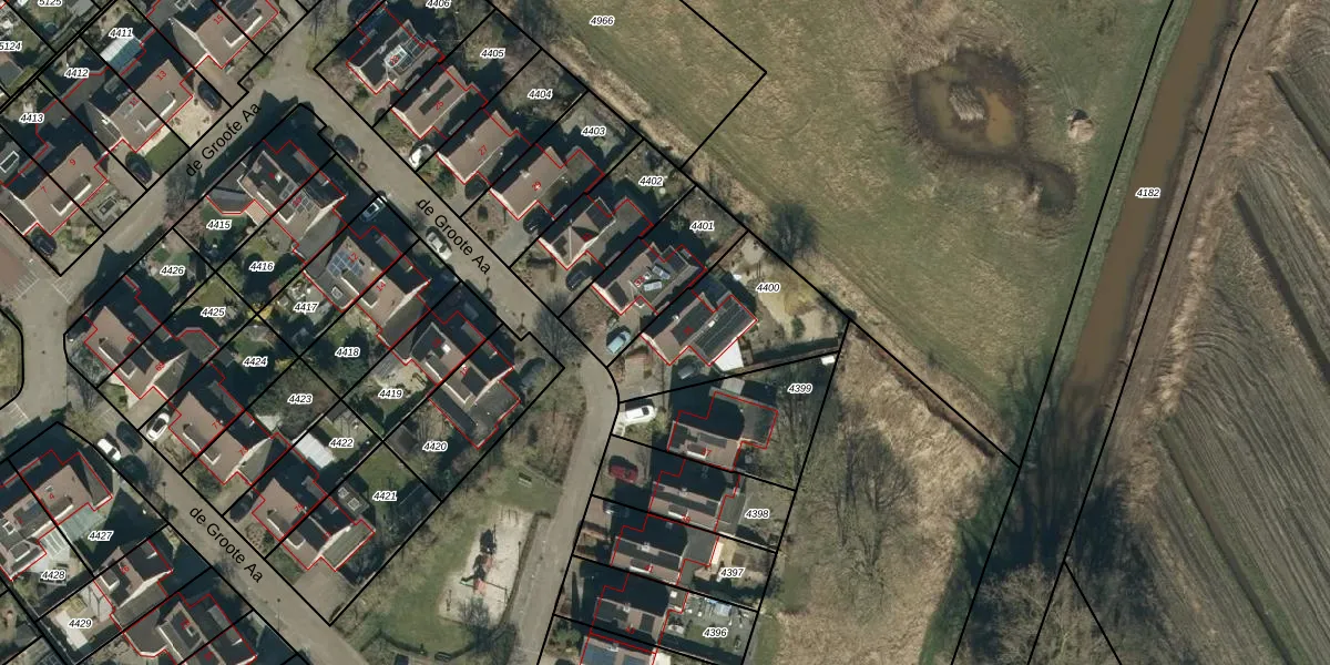 de Groote Aa 35 is gelegen op kadastraal perceel HZE00F4400. Deze kadastrale aanduiding is uniek en wordt gebruikt door het Kadaster om eigendomsrechten en andere zakelijke rechten vast te leggen. Het perceel maakt onderdeel uit van de kadastrale gemeente Heeze.