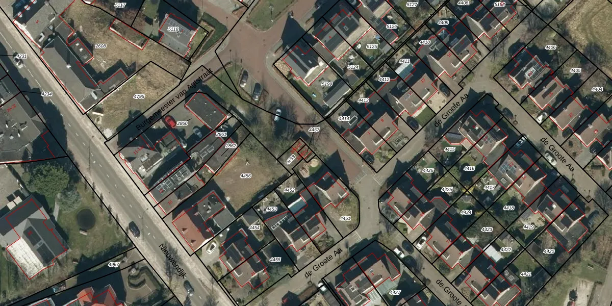 de Groote Aa 5-NE01 is gelegen op kadastraal perceel HZE00F4457. Deze kadastrale aanduiding is uniek en wordt gebruikt door het Kadaster om eigendomsrechten en andere zakelijke rechten vast te leggen. Het perceel maakt onderdeel uit van de kadastrale gemeente Heeze.