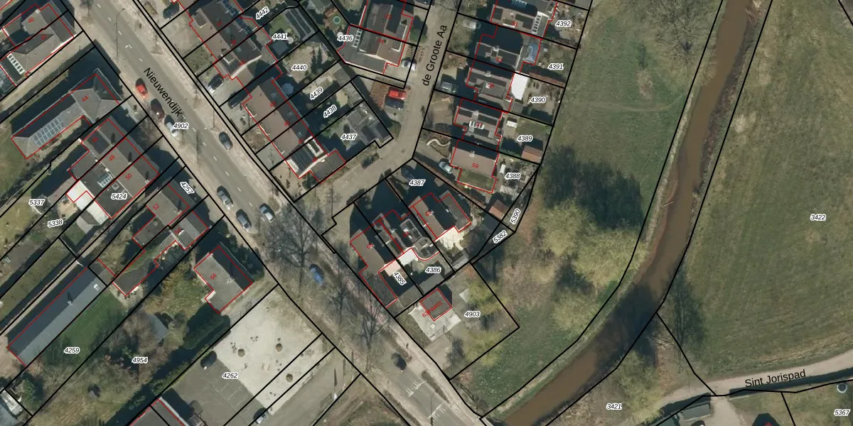 Het perceel waarop de Groote Aa 61 staat heeft een oppervlakte van 322 m². Dit is een groot perceel. De perceeloppervlakte wordt geregistreerd door het Kadaster. Gedetailleerde informatie over de maten van dit perceel kunt u vinden in het rapport Kadastrale kaart met maatvoering van de Groote Aa 61.
