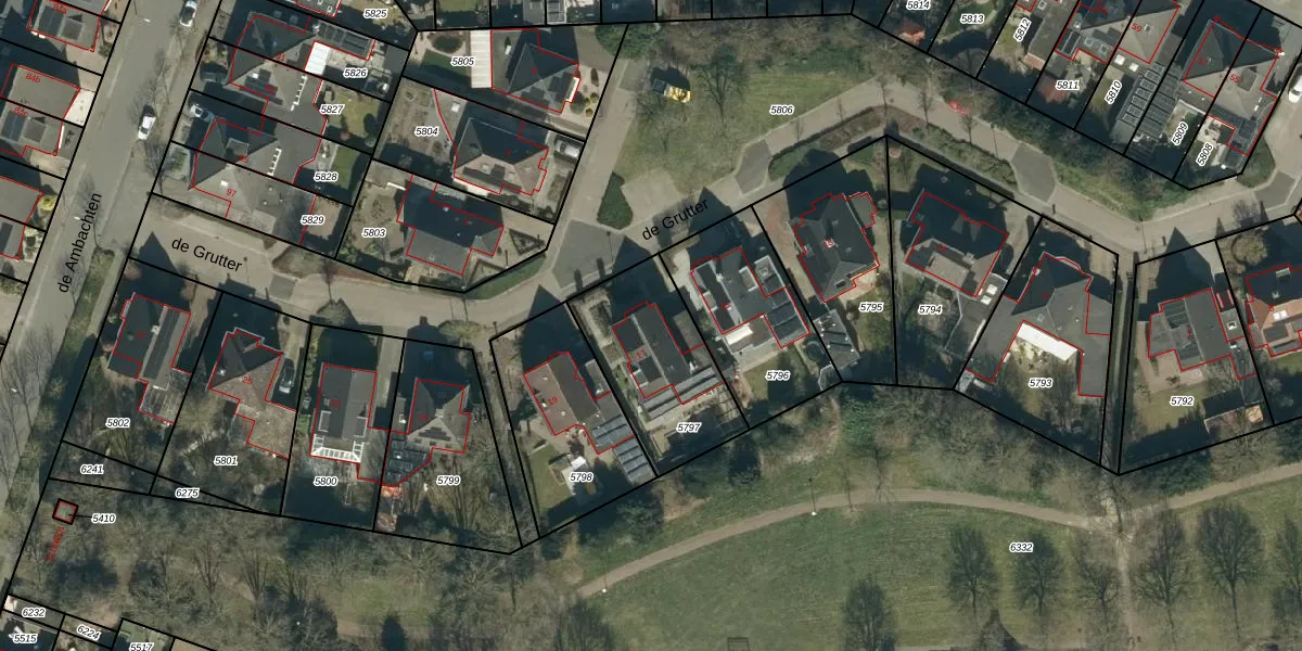 Het perceel waarop de Grutter 17 staat heeft een oppervlakte van 489 m². Dit is een groot perceel. De perceeloppervlakte wordt geregistreerd door het Kadaster. Gedetailleerde informatie over de maten van dit perceel kunt u vinden in het rapport Kadastrale kaart met maatvoering van de Grutter 17.