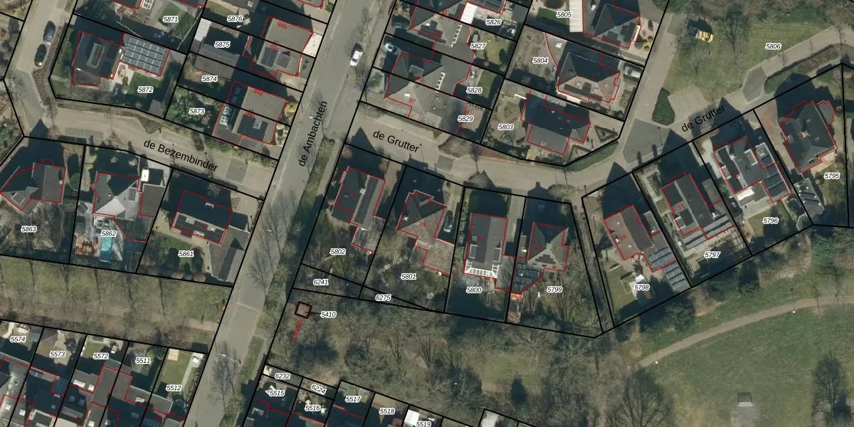 Het perceel waarop de Grutter 25 staat heeft een oppervlakte van 518 m². Dit is een groot perceel. De perceeloppervlakte wordt geregistreerd door het Kadaster. Gedetailleerde informatie over de maten van dit perceel kunt u vinden in het rapport Kadastrale kaart met maatvoering van de Grutter 25.