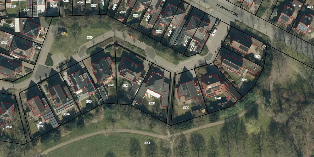 Het perceel waarop de Grutter 9 staat heeft een oppervlakte van 576 m². Dit is een groot perceel. De perceeloppervlakte wordt geregistreerd door het Kadaster. Gedetailleerde informatie over de maten van dit perceel kunt u vinden in het rapport Kadastrale kaart met maatvoering van de Grutter 9.