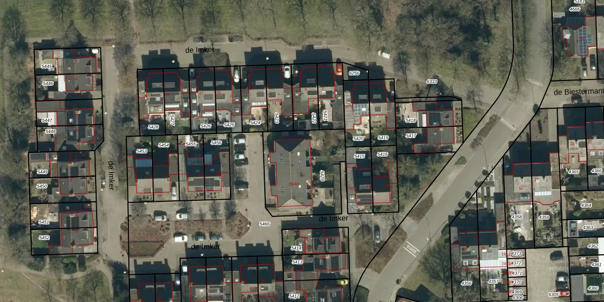 Het perceel waarop de Imker 49 staat heeft een oppervlakte van 726 m². Dit is een groot perceel. De perceeloppervlakte wordt geregistreerd door het Kadaster. Gedetailleerde informatie over de maten van dit perceel kunt u vinden in het rapport Kadastrale kaart met maatvoering van de Imker 49.