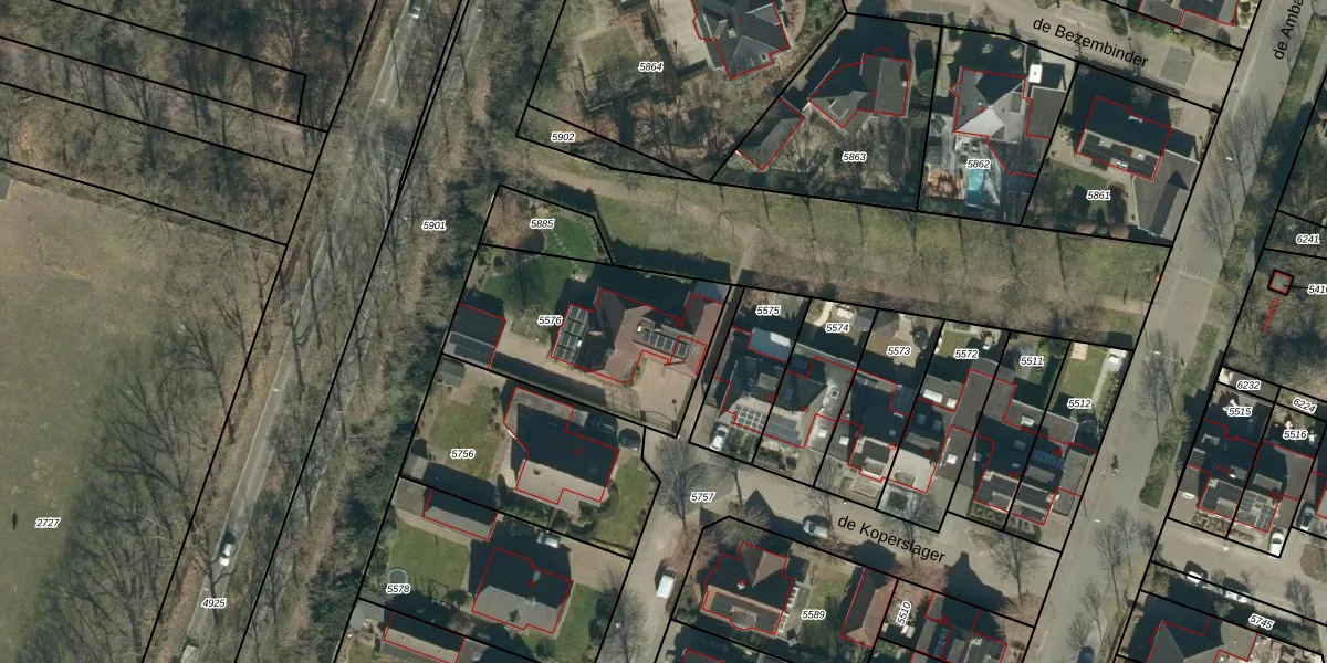 de Koperslager 19 is gelegen op kadastraal perceel HZE00A5576. Deze kadastrale aanduiding is uniek en wordt gebruikt door het Kadaster om eigendomsrechten en andere zakelijke rechten vast te leggen. Het perceel maakt onderdeel uit van de kadastrale gemeente Heeze.
