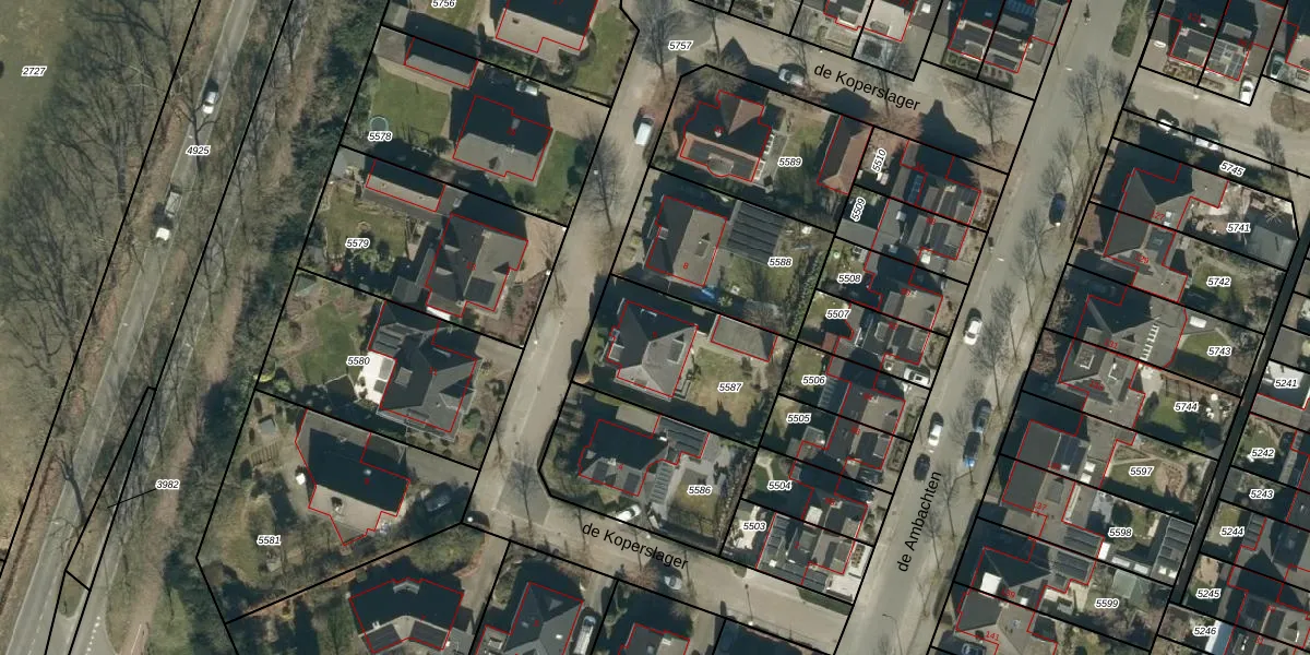 de Koperslager 6 is gelegen op kadastraal perceel HZE00A5587. Deze kadastrale aanduiding is uniek en wordt gebruikt door het Kadaster om eigendomsrechten en andere zakelijke rechten vast te leggen. Het perceel maakt onderdeel uit van de kadastrale gemeente Heeze.